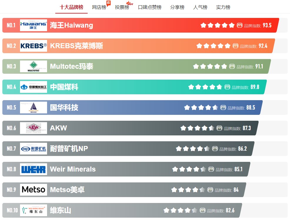 Multotec玛泰、中国煤科、国华科技、AKW、耐普矿机NP、Weir Minerals、Metso美卓、维东山等,
